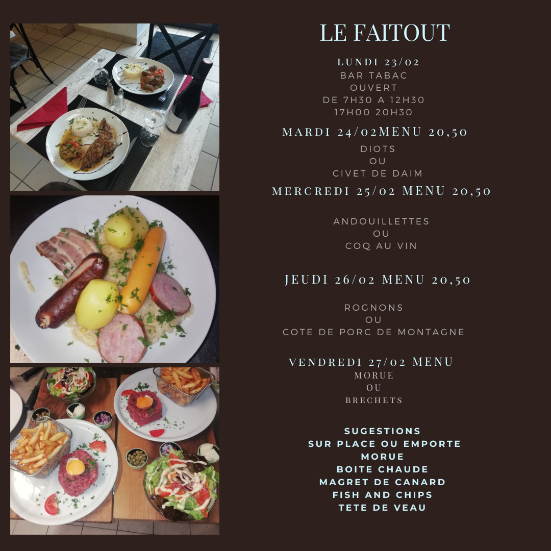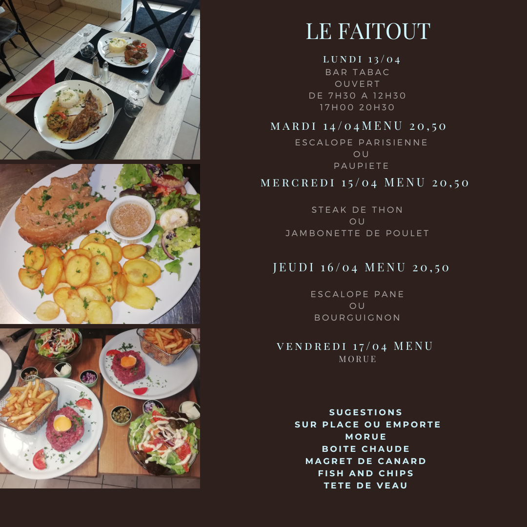 Chaque jour, nous vous proposons des plats du jour faits maison avec des produits frais et de saison.